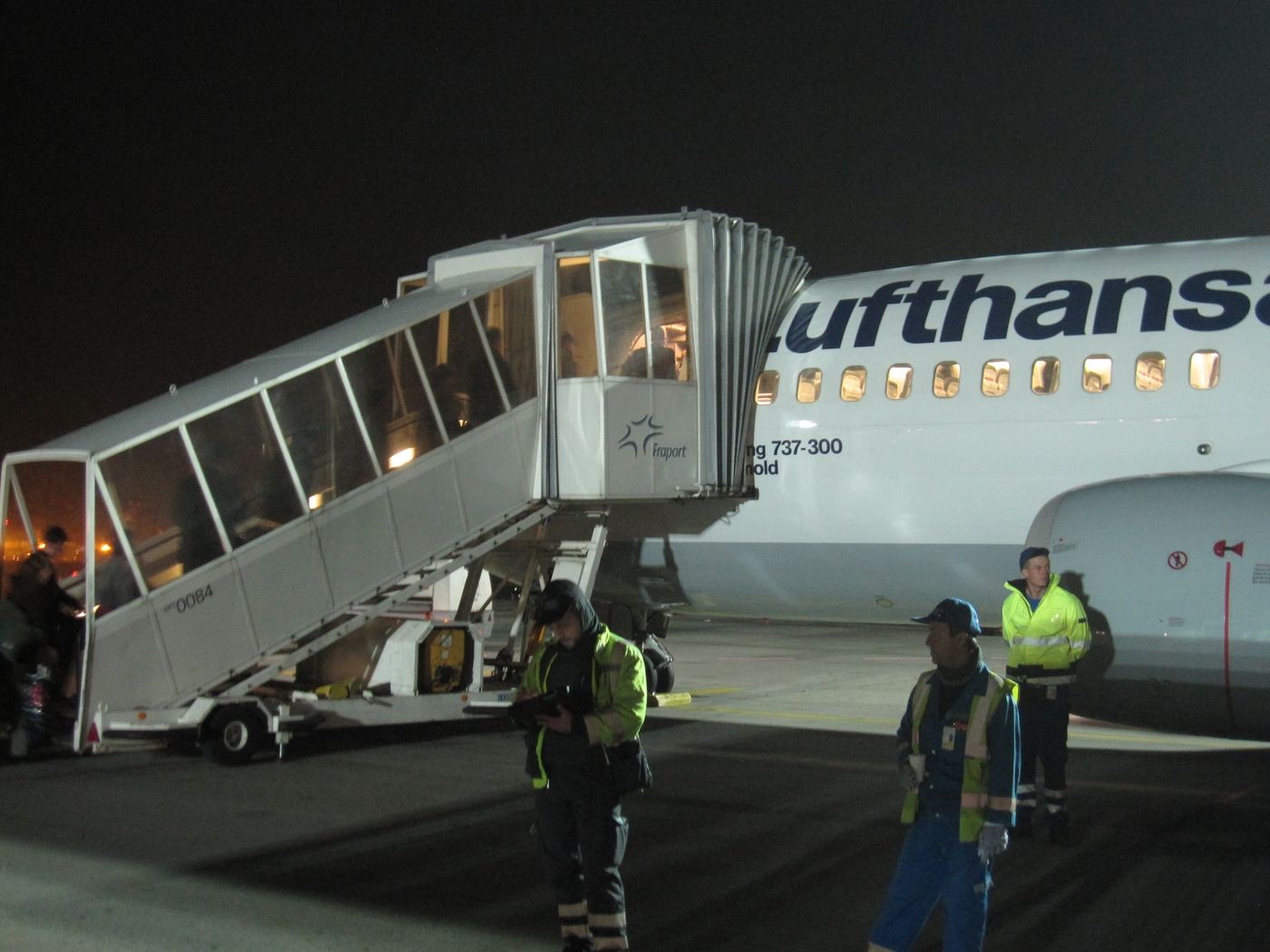 Flughafen Frankfurt am 23.11.2011, Einstieg in eine Boing 737-300