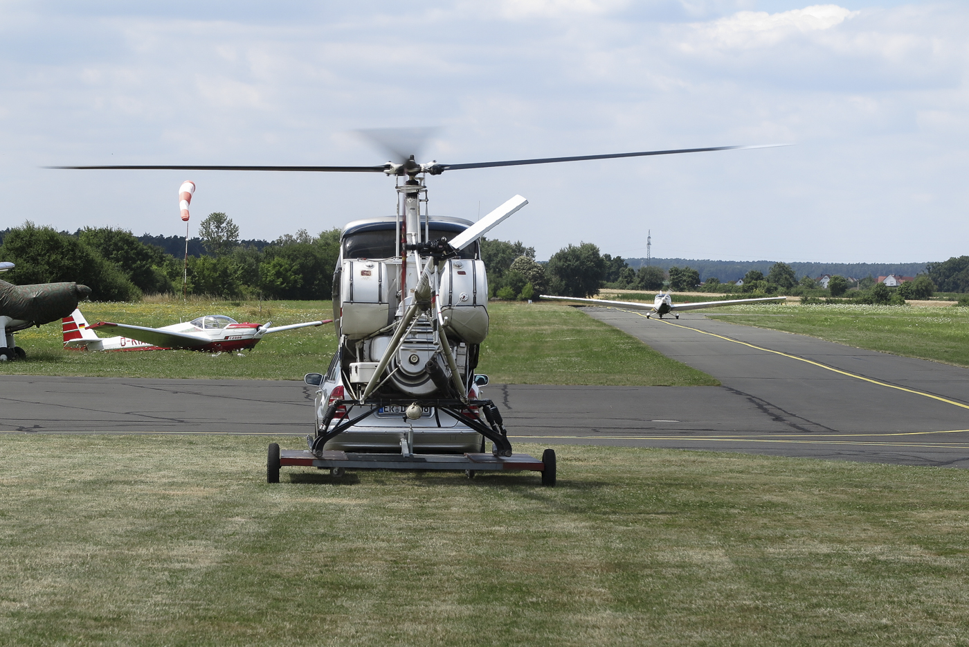 Flugplatz Herzogenaurach am 16.7.2022, Hughes landet auf dem Hänger