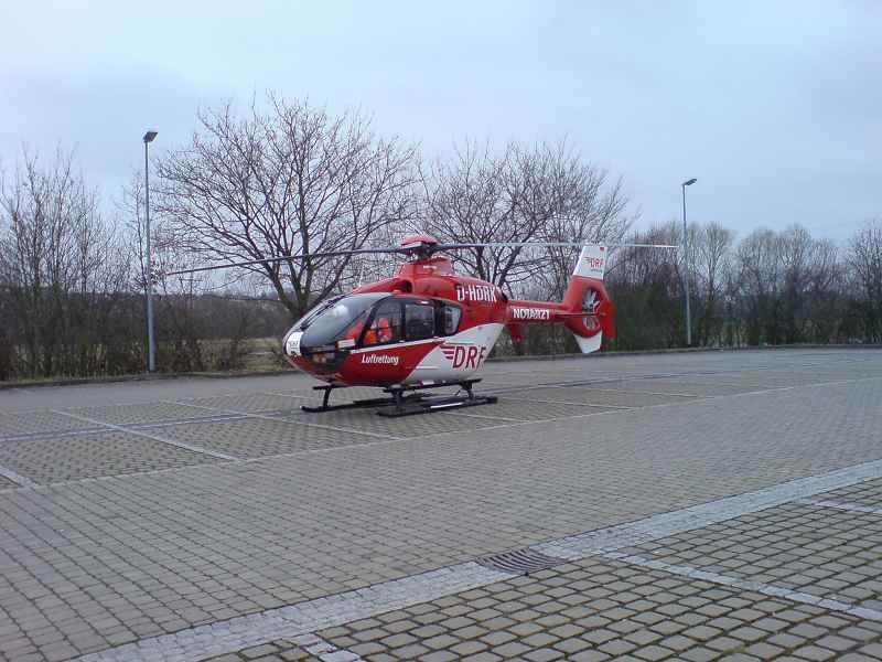 Rettungshubschrauber auf dem Parkplatz bei der Feuerwehr