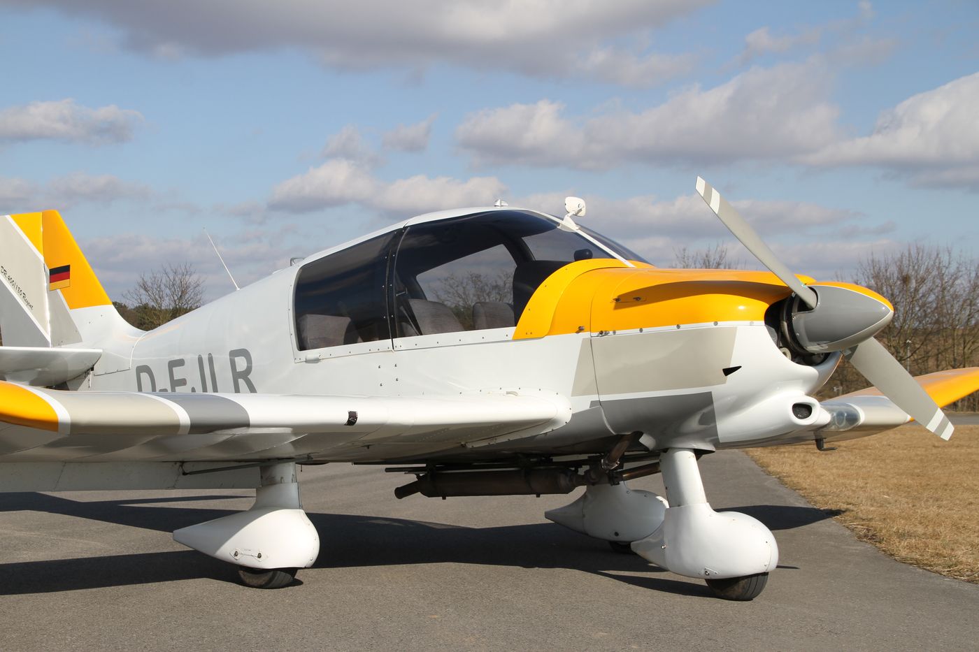 Unsere D-EJLR auf dem Taxiway des Flugplatzes Grasberg bei Bad Neustadt.