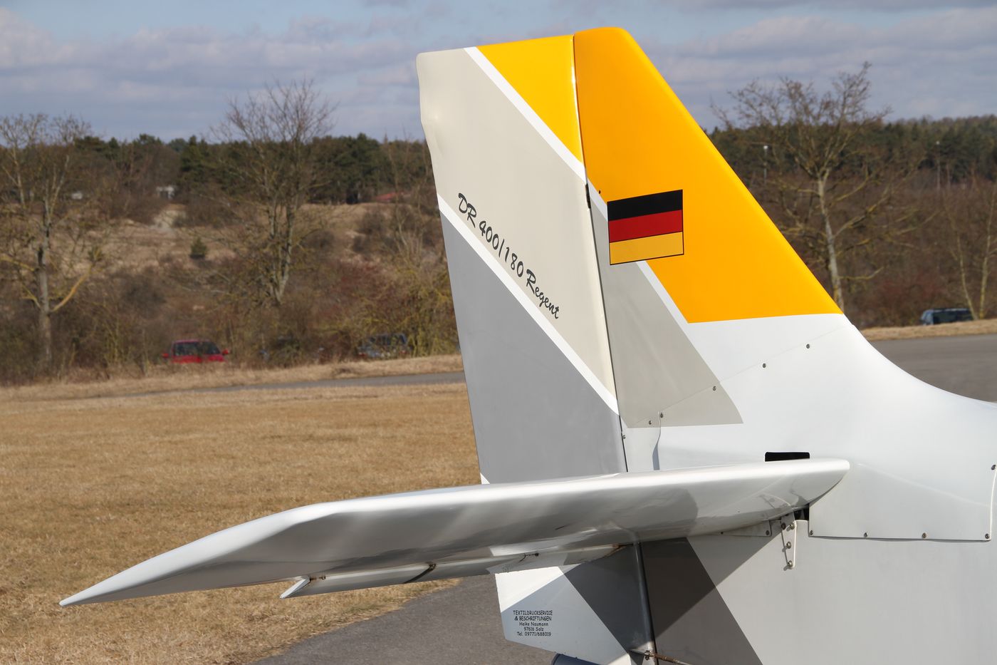 Seitenruder und Heck unserer DR 400 auf dem Grasberg.