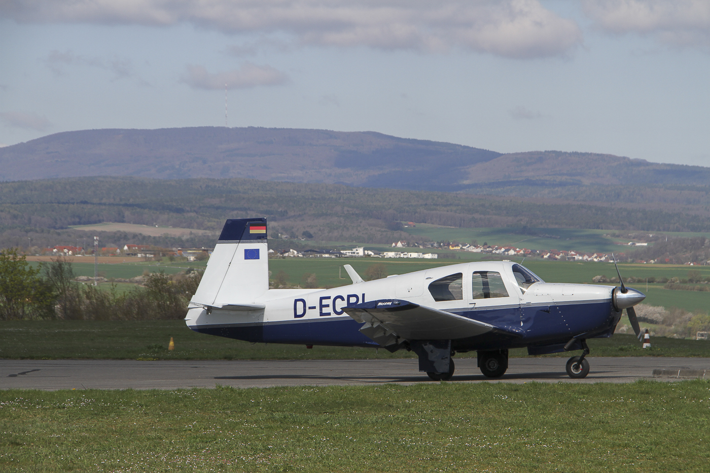 Flugplatz Bad Neustadt - Grasberg am 16.4.2022, Mooney an der Tankstelle