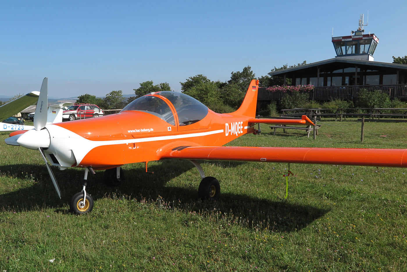 Flugplatz Bad Neustadt - Grasberg am 20.8.2024, Breezer aus Boberg vor dem Clubheim