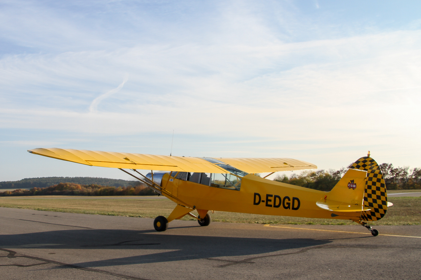 EDFD, Flugplatz Bad Neustadt am 21.10.2018, Piper Cub gerade gelandet