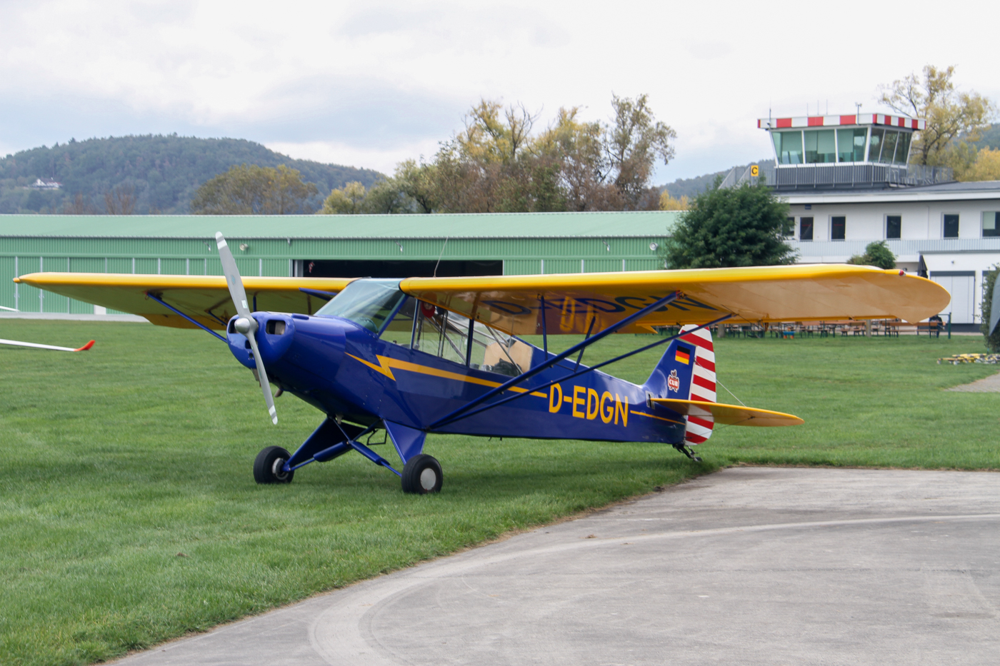 eine PA 18 auf dem Flugplatz Gelnhausen (EDFG) am 15.10.2023