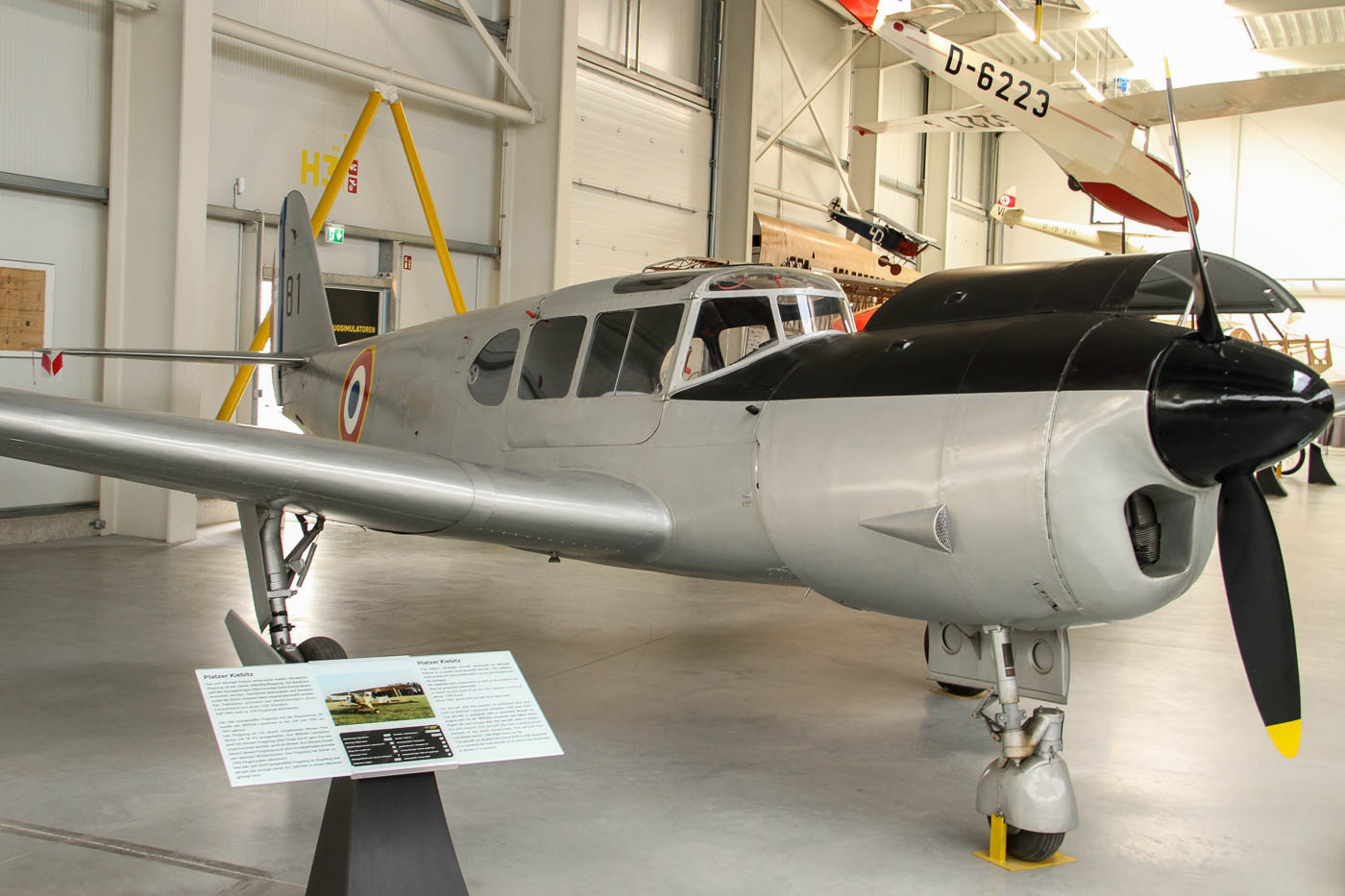 Messerschmitt Me 208 / Nord 1101, Nordalpha mit Renault 6 Q 10 Motor. Das ist eine Weiterentwicklung der Me 108, die ausgestellte Maschine ist ein Umbau einer Me 108 auf Me 208 (Nord 1101). Länge 8,85 m, Spannweite 11,5 m, Leergewicht 945 kg, Startgewicht 1580 kg, Dienstgipfelhöhe 5900 m, 305 km/h, 177 kW, Baujahr 1946.