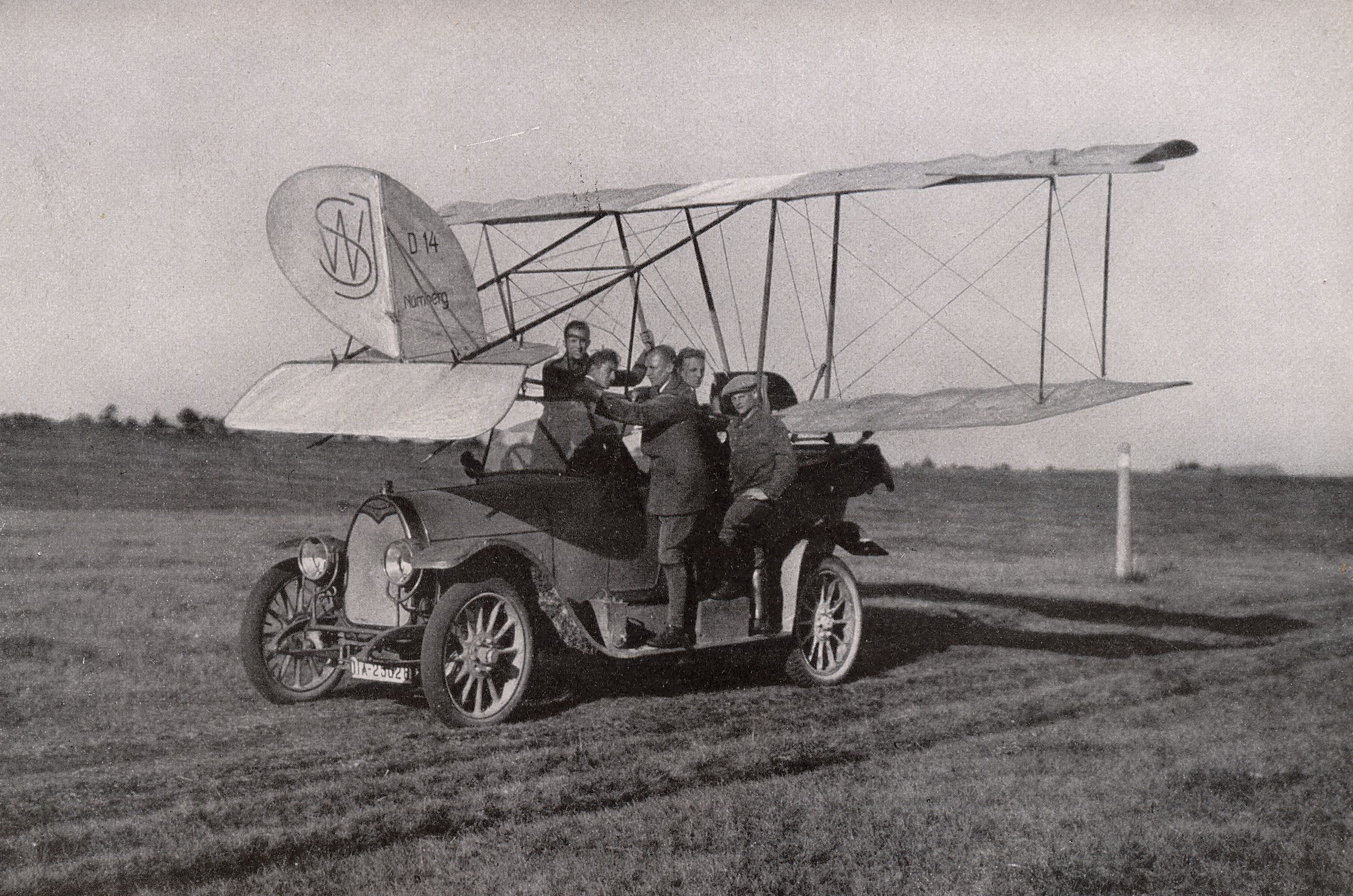 Der Wind hat sich gedreht. Von einer Übungsstelle zur anderen. Vorne auf dem Trittbrett Hauptmann Student (vermutlich frühe 20ziger Jahre).
