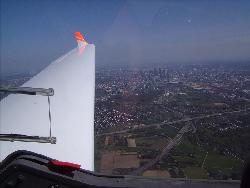 unter der linken Fläche der Dimona ist Frankfurt erkennbar