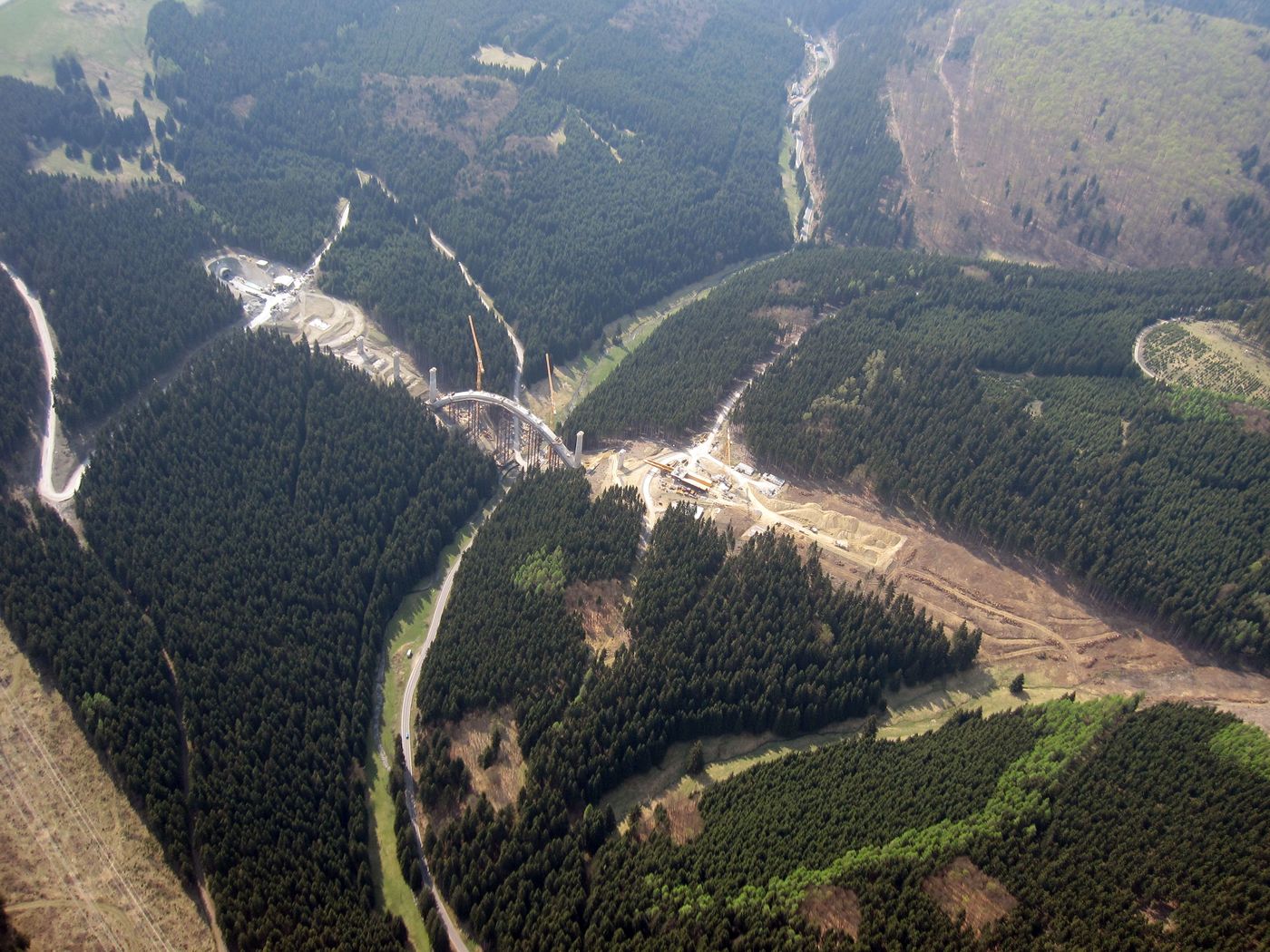 Libellenflug am Karfreitag, Brückenbaustelle mitten im Thüringer Wald
