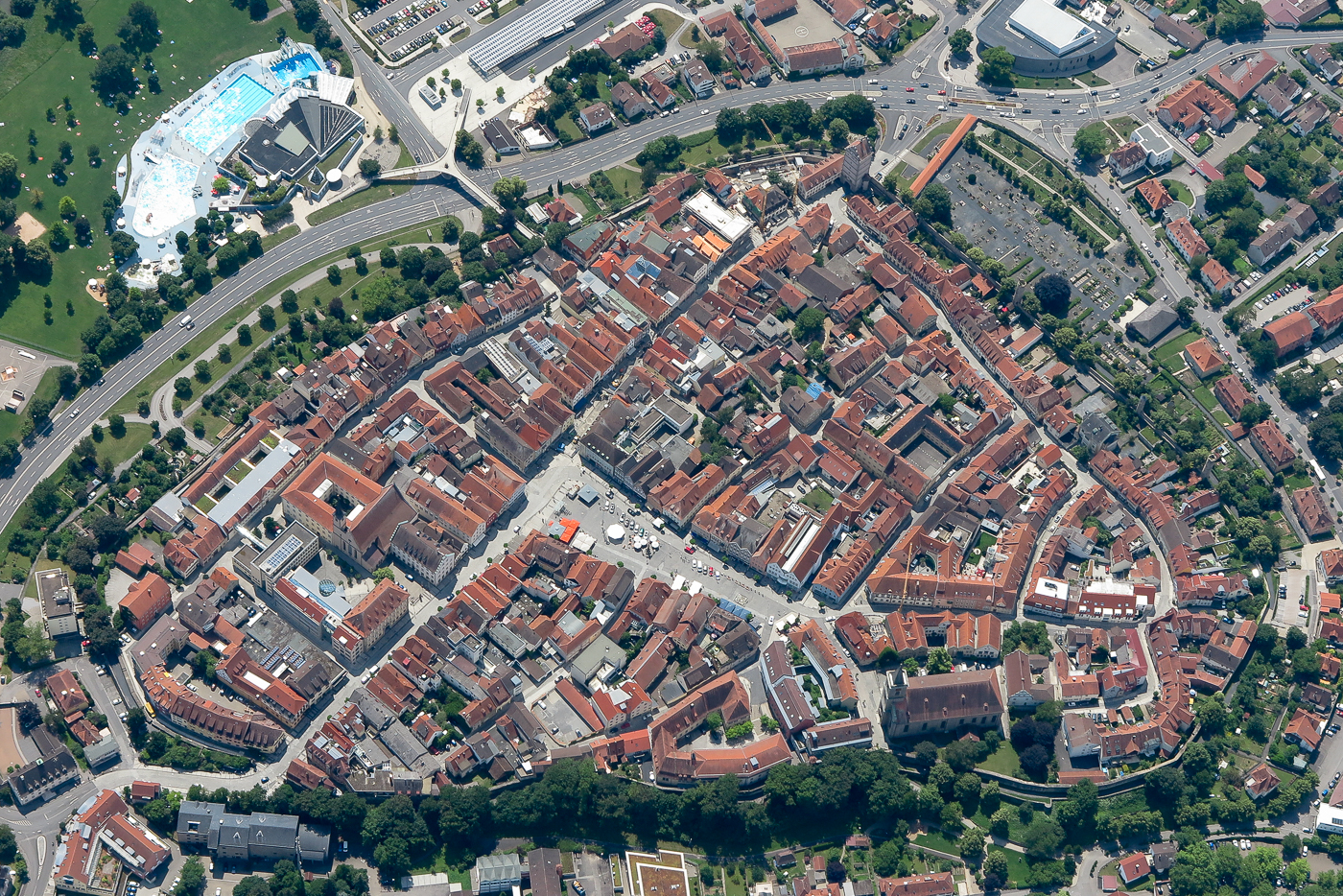Luftbild am 05.07.2018, Altstadt Bad Neustadt mit Schwimmbad
