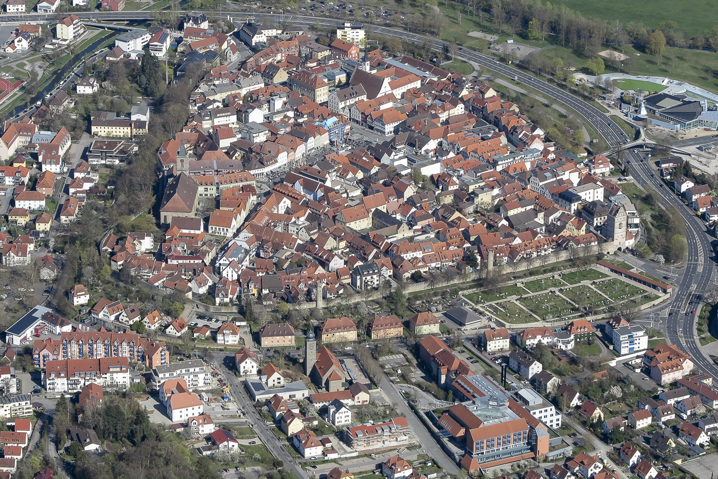 Luftbild aus dem Segelflugzeug am 18.4.2022, Altstadt Bad Neustadt