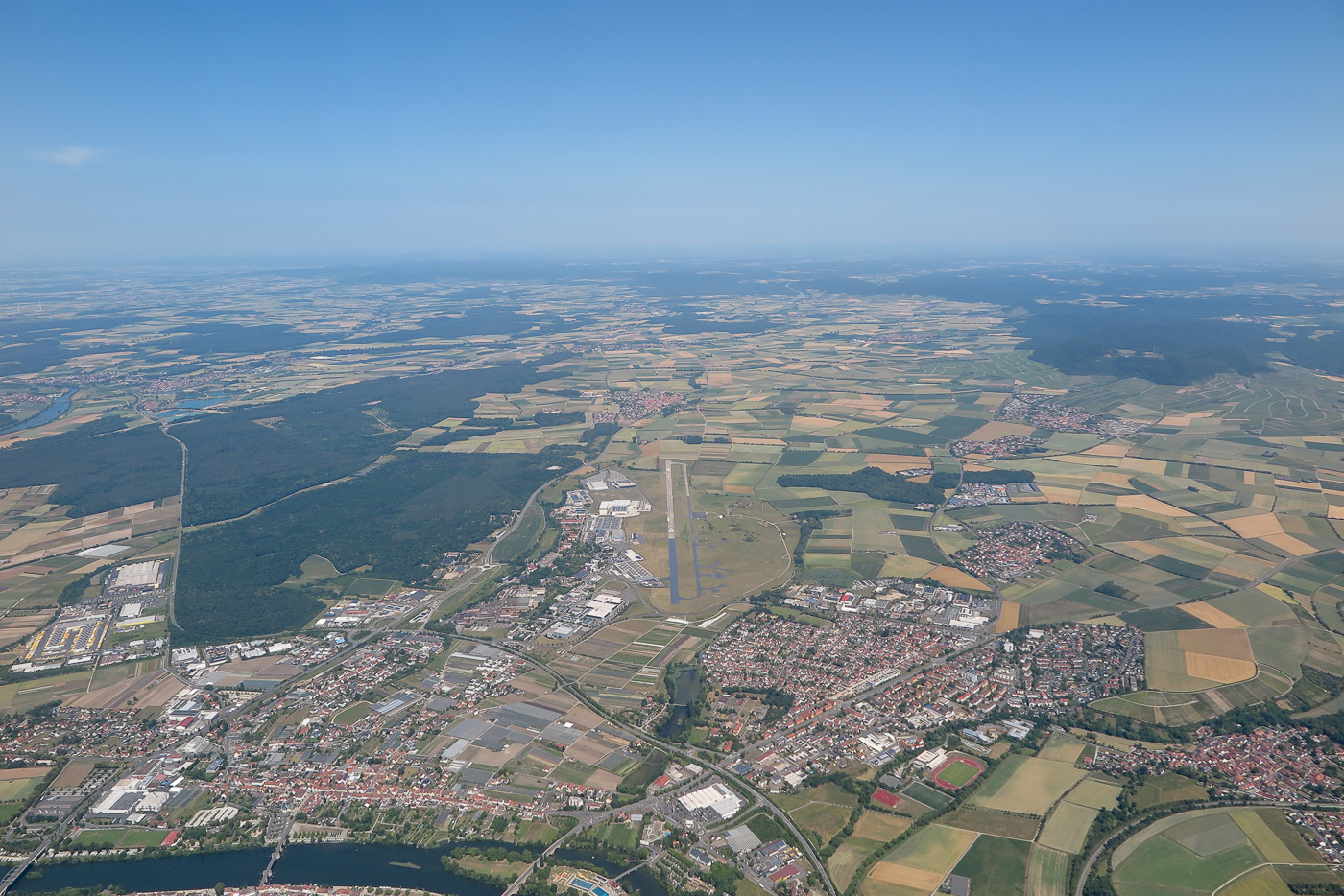 Luftbild Kitzingen am 21.6.2025, Blauthermik bis zum Horizont
