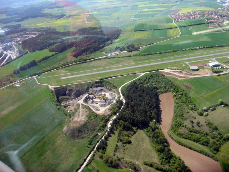 Segelflug mit einer Ka 13, kleiner Steinbruch und Piste auf dem Grasberg