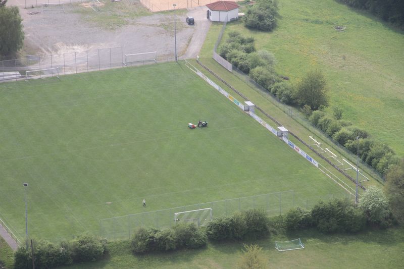 Cessna 150 L Flug am 8.5.2010, Sportplatz im Querabflug