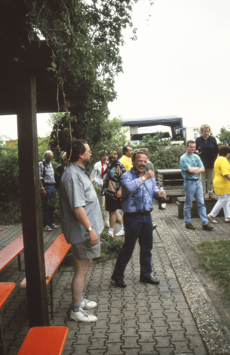 Werner kurz nach seiner Taufe als Ballonfahrer unter dem Clubheimbalkon.