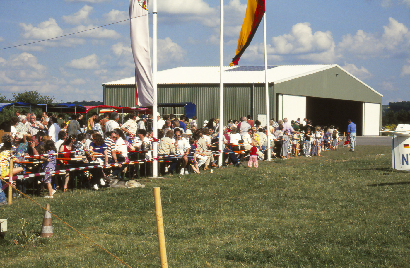 Viele Zuschauer zwischen Clubheim un grüner Halle.
