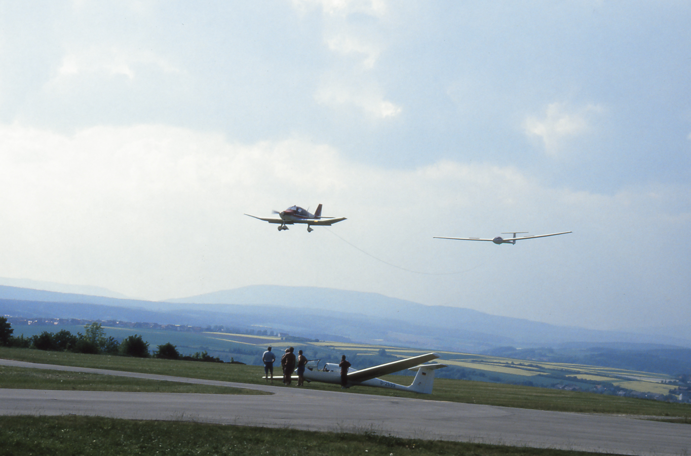 F-Schlepp im Anflug auf die Piste 14 zum tiefen Überflug oder sogar einem "touch and go".