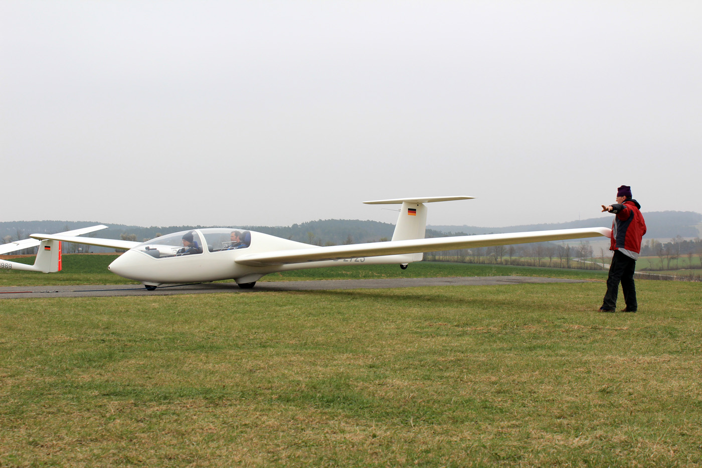 Der TWIN mit Flugschüler Daniel und Lehrer Marcel abflugbereit zum Windenstart