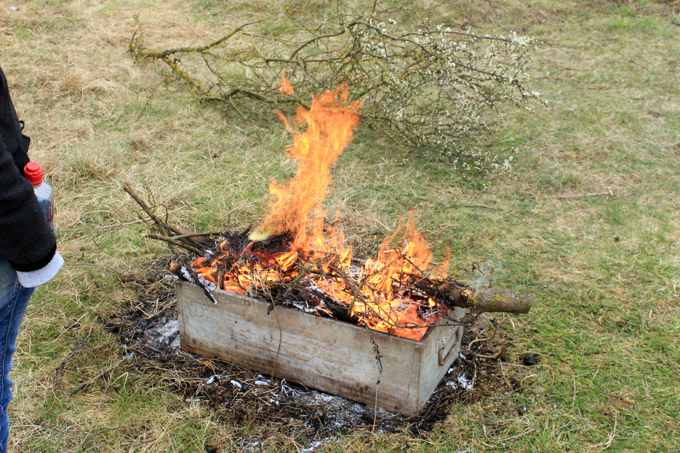 Wärmendes Feuer bei eisigen Temperaturen an Ostern