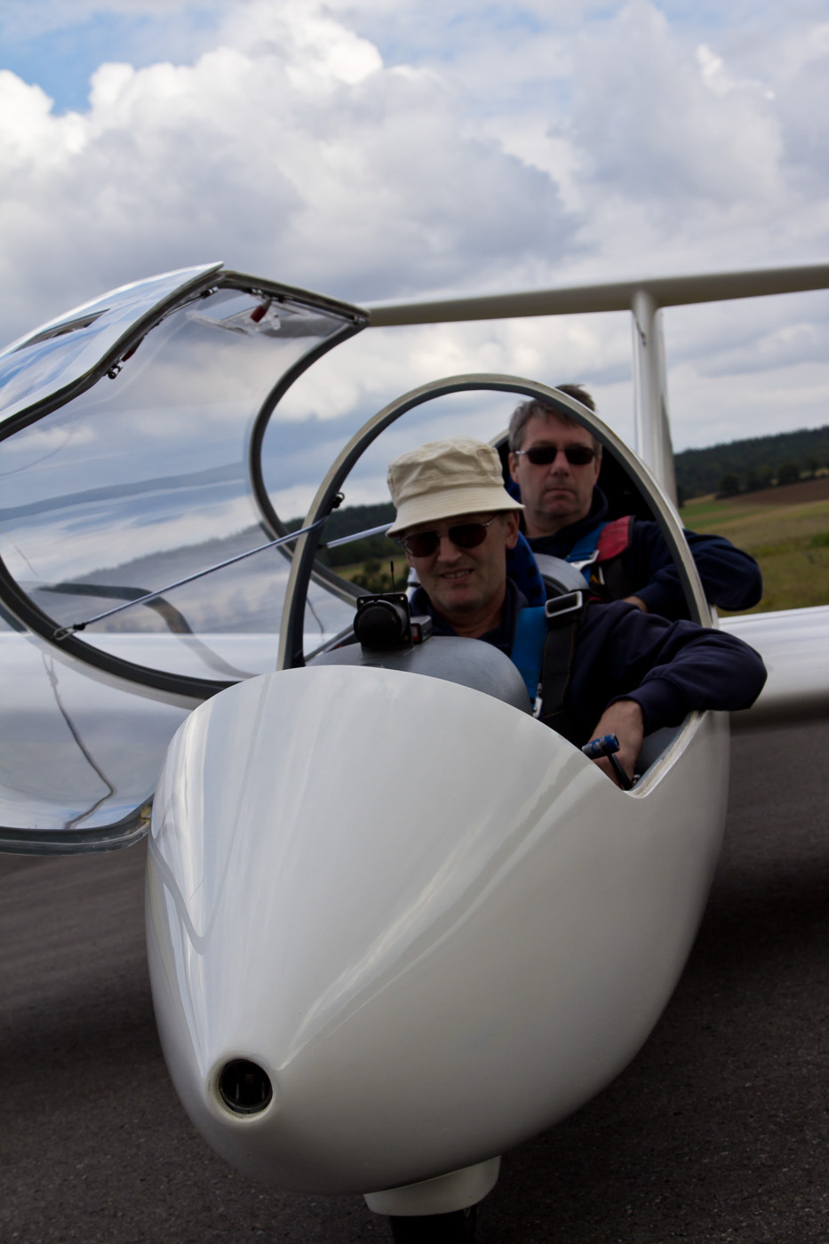 Der TWIN mit Flugschüler Leo und Lehrer Andi vor dem Flugzeug-Schleppstart