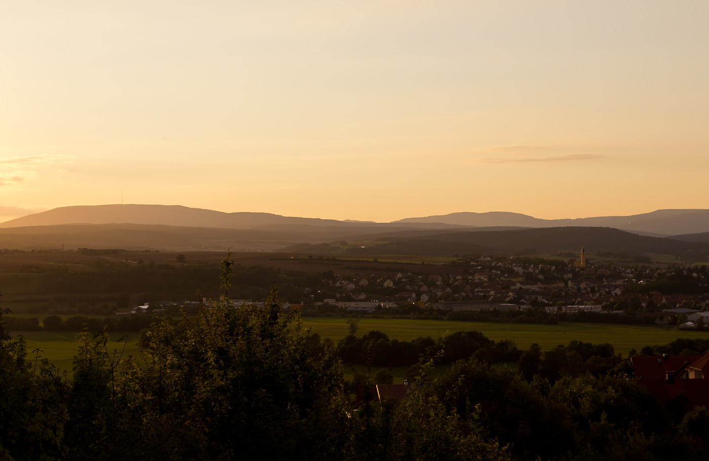 Abendliche Aussicht über die Gartenstadt und auf den Kreuzberg