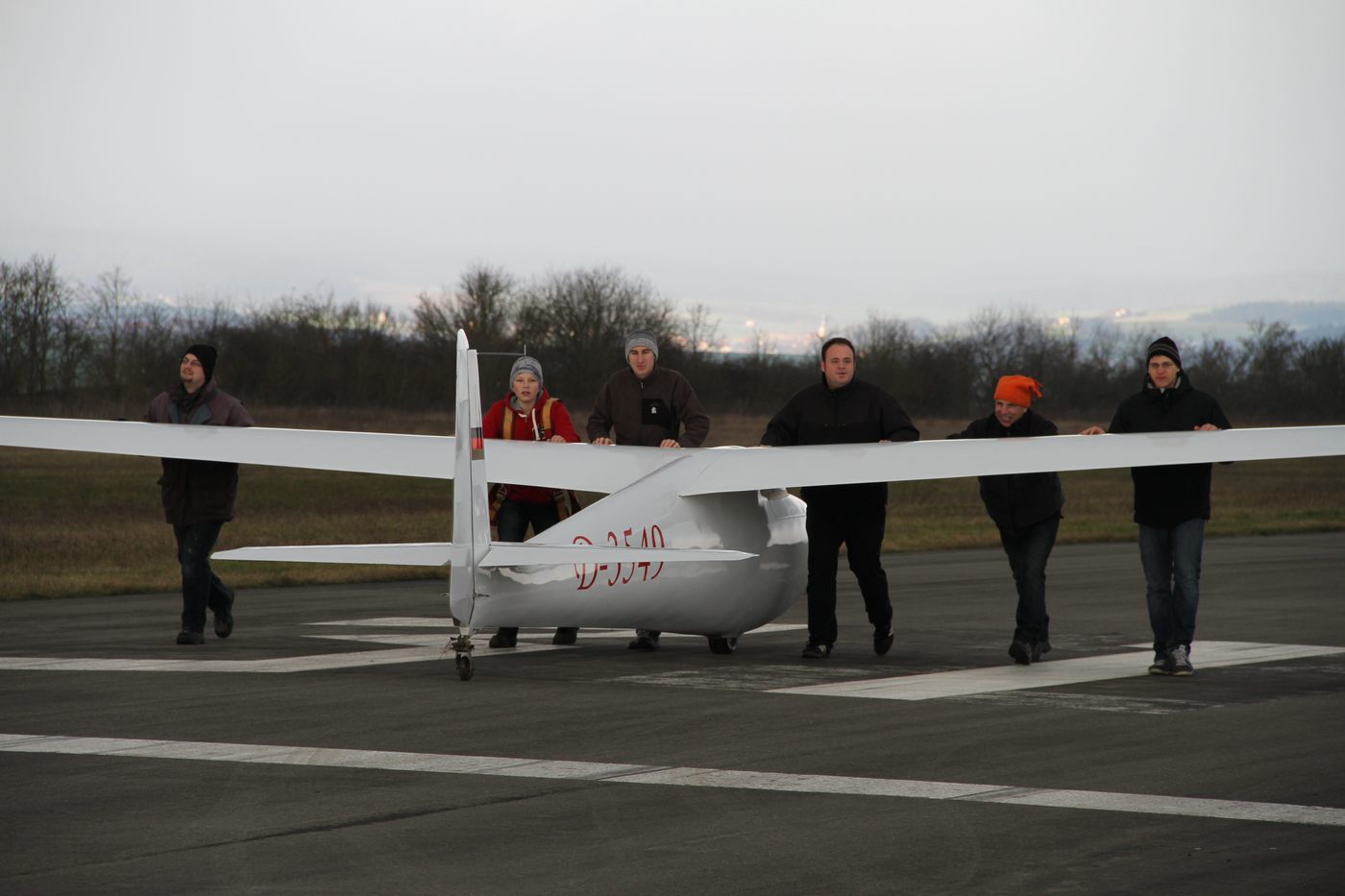 Die Ka 6 wird auf der Piste zurück geschoben.