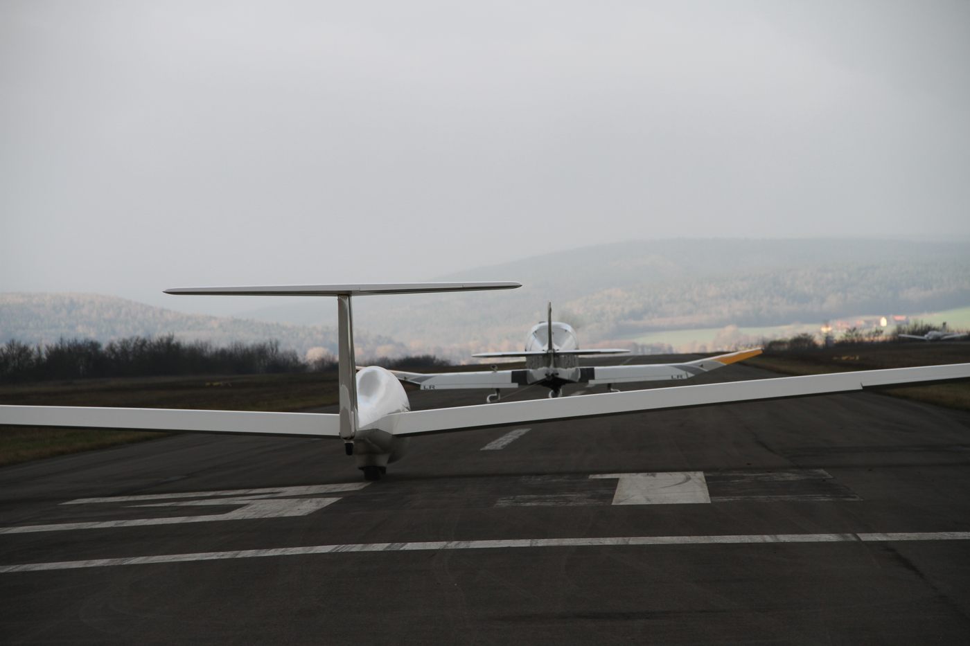 F-Schlepp von hinten fotografiert, während des Startlaufs.