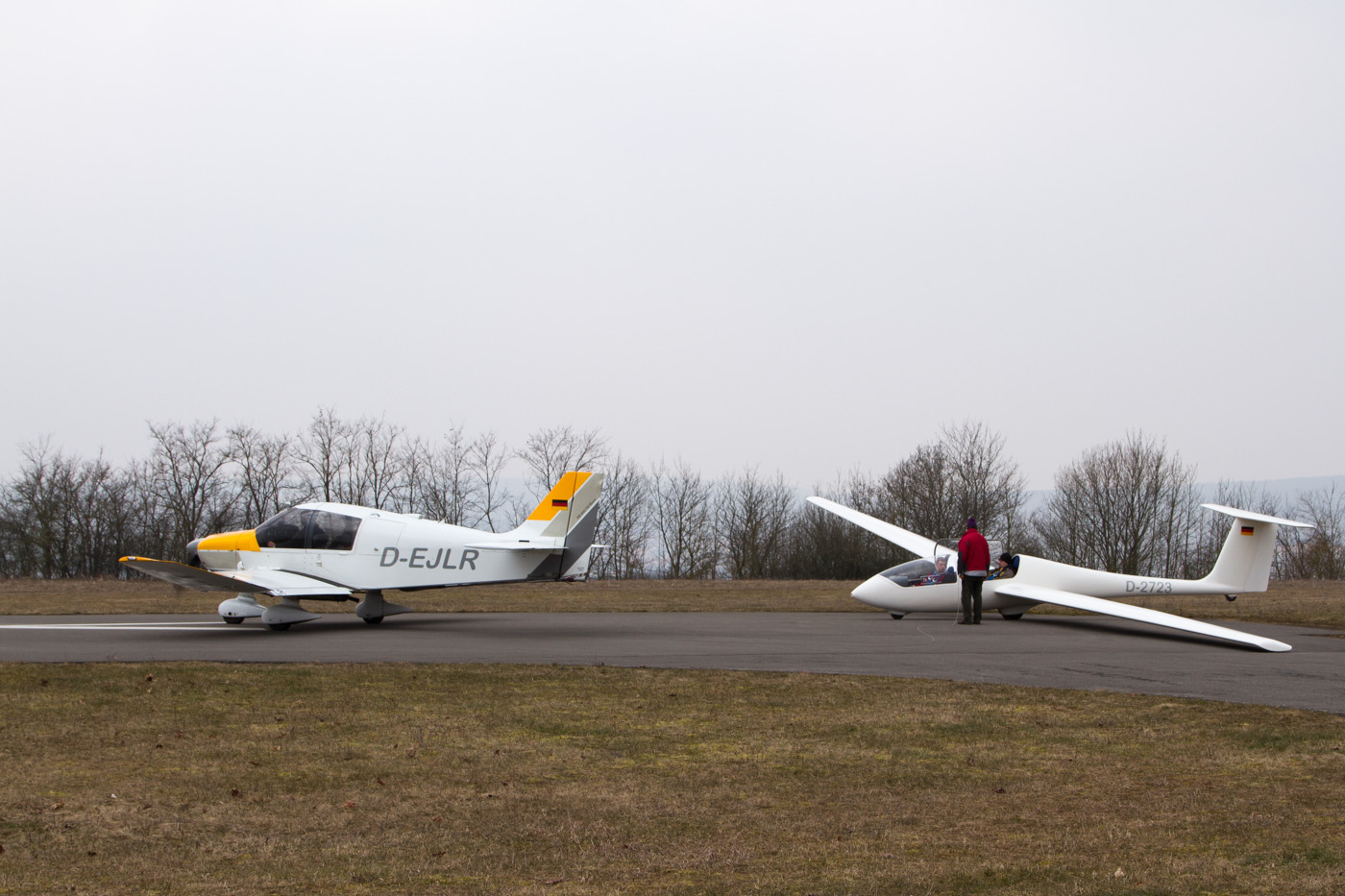 Der TWIN mit Flugschüler Jochen und Lehrer Andi wird zum Flugzeug-Schleppstart vorbereitet