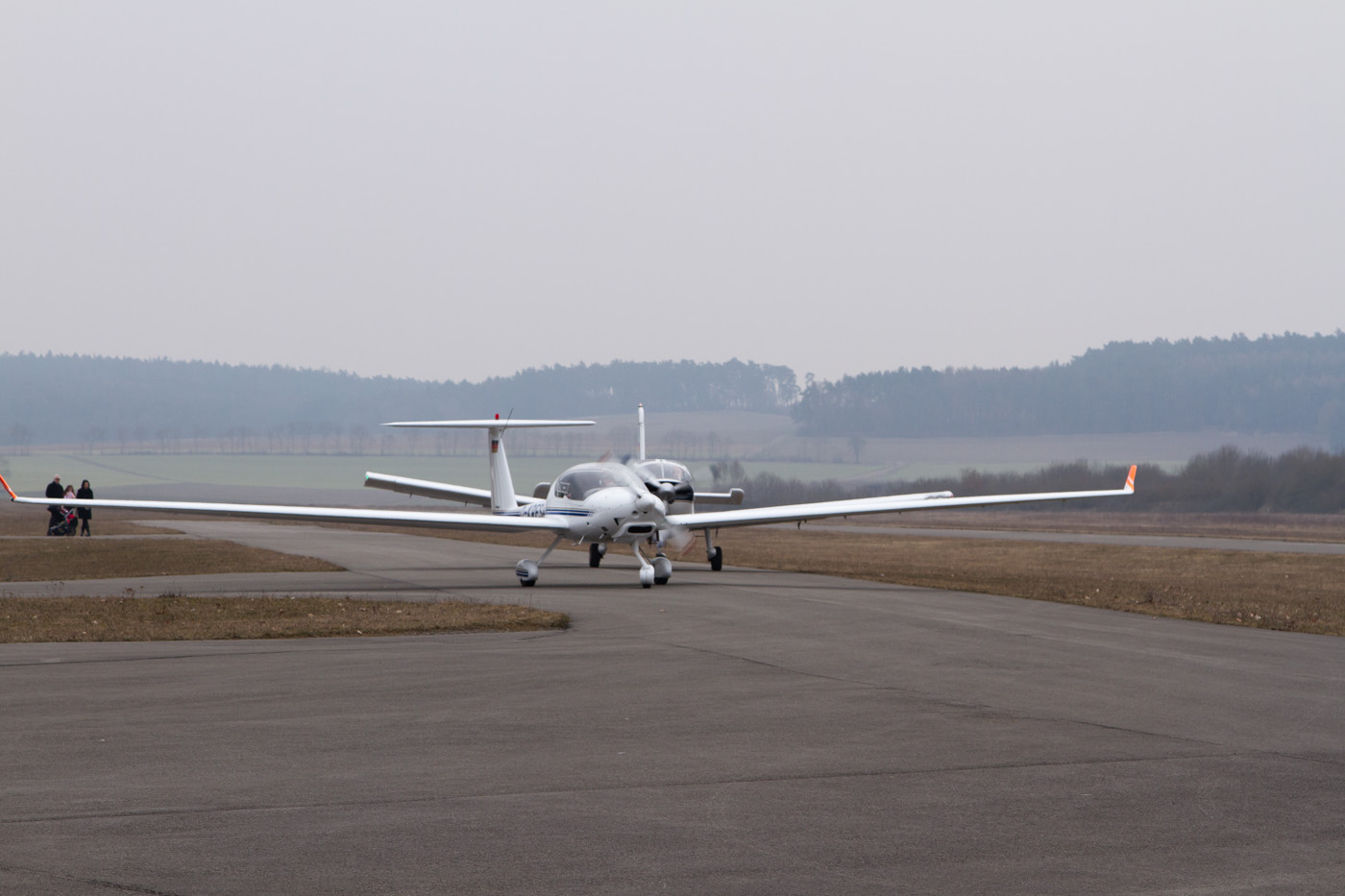 Motosegler Super Dimona und Motoflugzeug Mooney dahinter