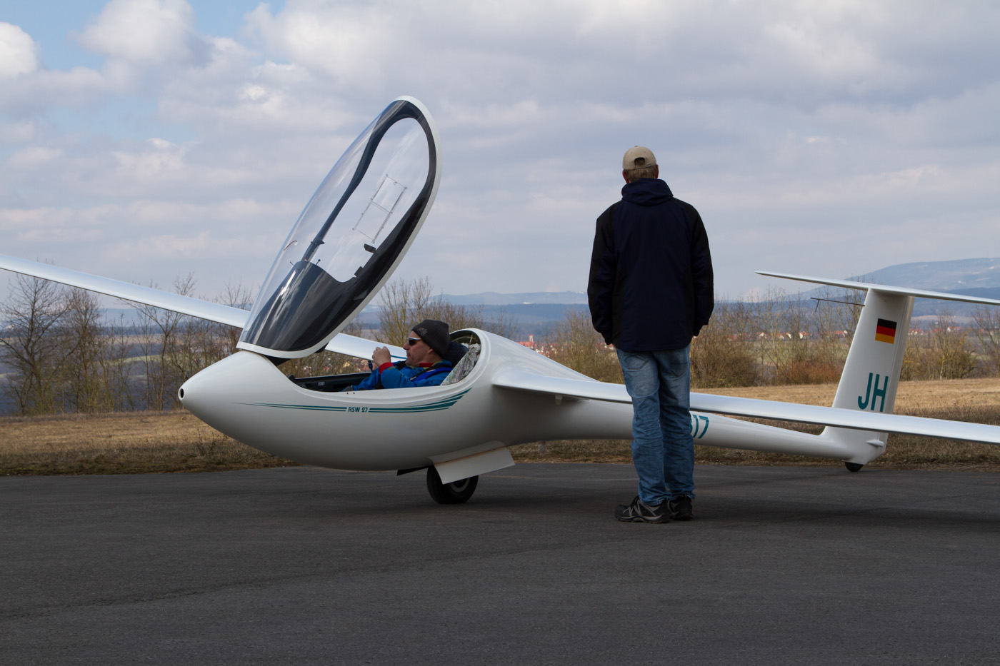 Startcheck des Piloten in einer ASW 27