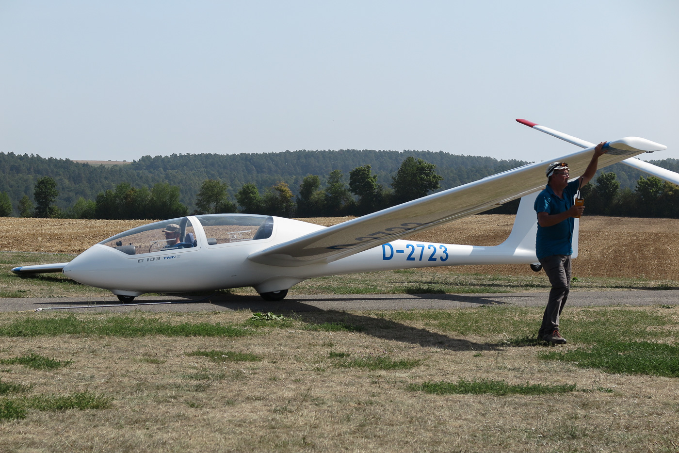 Flugplatz Bad Neustadt - Grasberg am 14.8.2025, Start zum allerersten Alleinflug mit Segelflugzeug