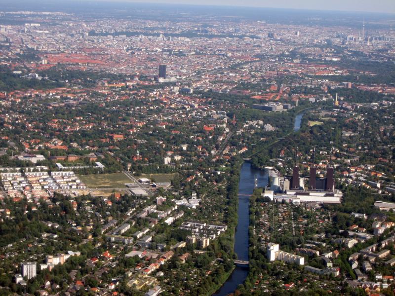Luftbild, Teltow Kanal kurz vor Pflichtmeldepunkt