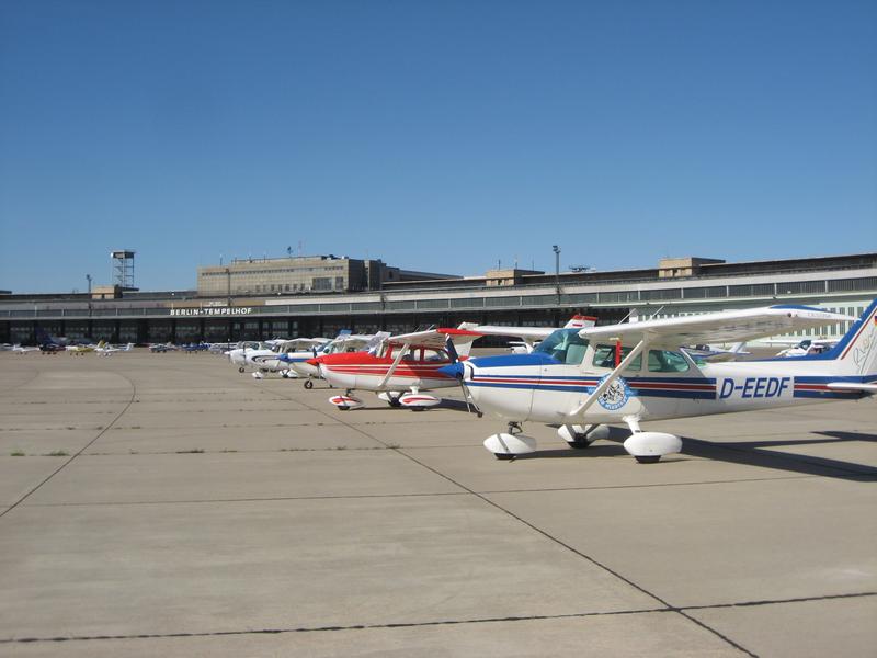 Vorfeld Tempelhof mit der Cessna 172 der Flugschule Bad Neustadt
