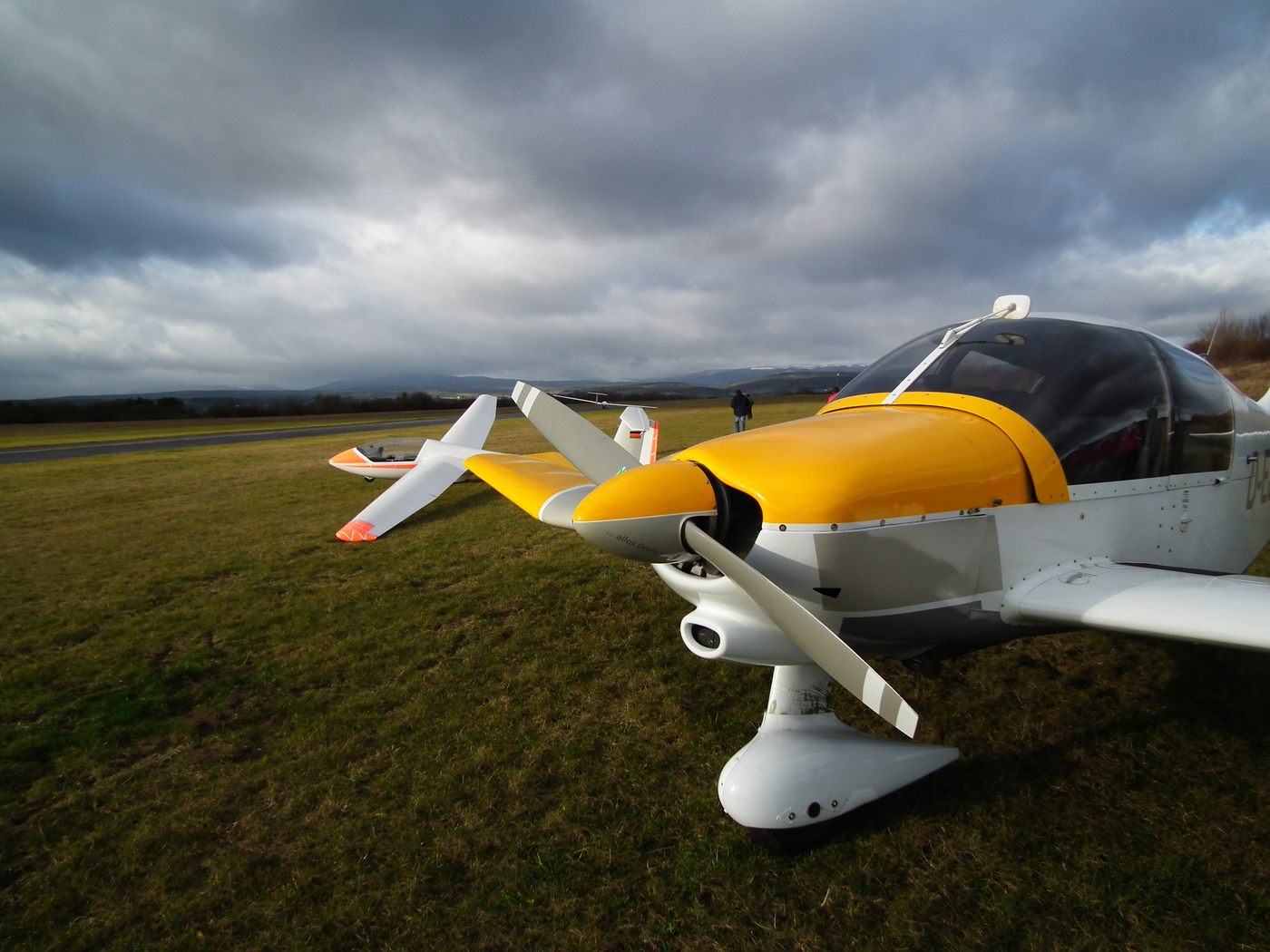 Drei-Königsfliegen 6.1.2012 in Bad Neustadt, wartende Schleppmaschine (Foto: Jannis Zacher).