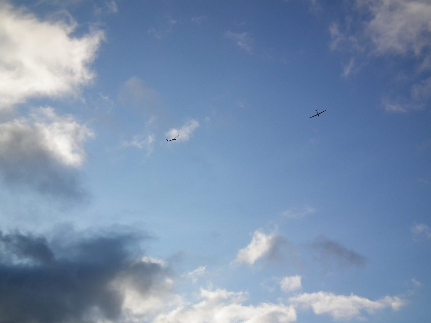 Drei-Königsfliegen 6.1.2012 in Bad Neustadt, zwischenzeitliche Wolkenlücke mit kreisenden Segelflugzeugen (Foto: Jannis Zacher).