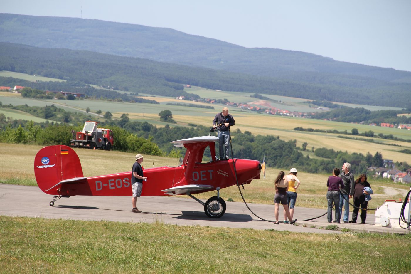 Flamingo Udet Doppeldecker tankt