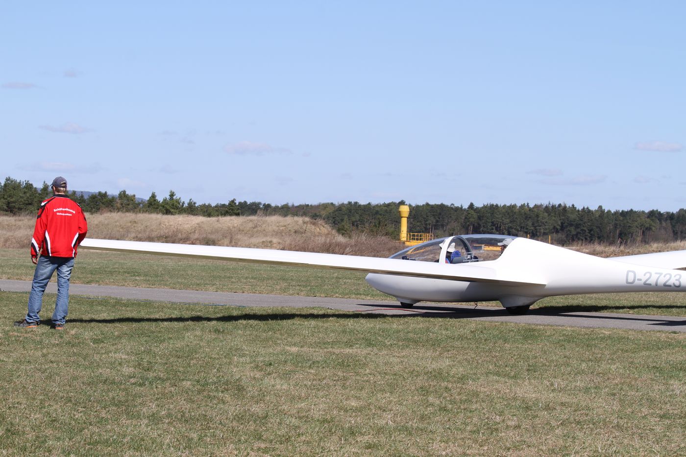 Flugplatz Bad Neustadt - Grasberg, Twin startklar an der Winde