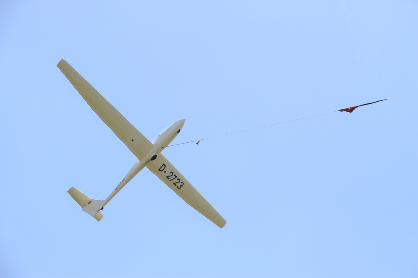 unser Grob Twin ungefähr auf halber Höhe beim Windenstart Piste 13