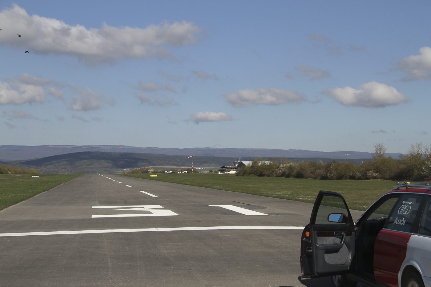 Flugplatz Bad Neustadt - Grasberg am 16.4.2022, Flugleiter inspiziert den Platz