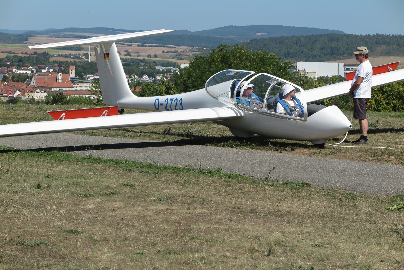Flugplatz Bad Neustadt - Grasberg am 11.8.2025, Twin Schulflug, kurz vor dem Einklinken