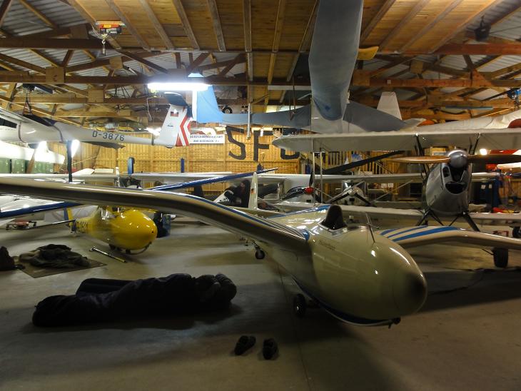 Sunrisefliegen in Bad Kissingen, Segelflugzeughangar