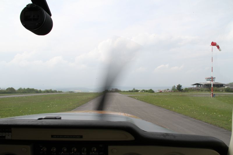 Copilotenblick aus der C 150 L beim Rollen auf unserem Taxiway