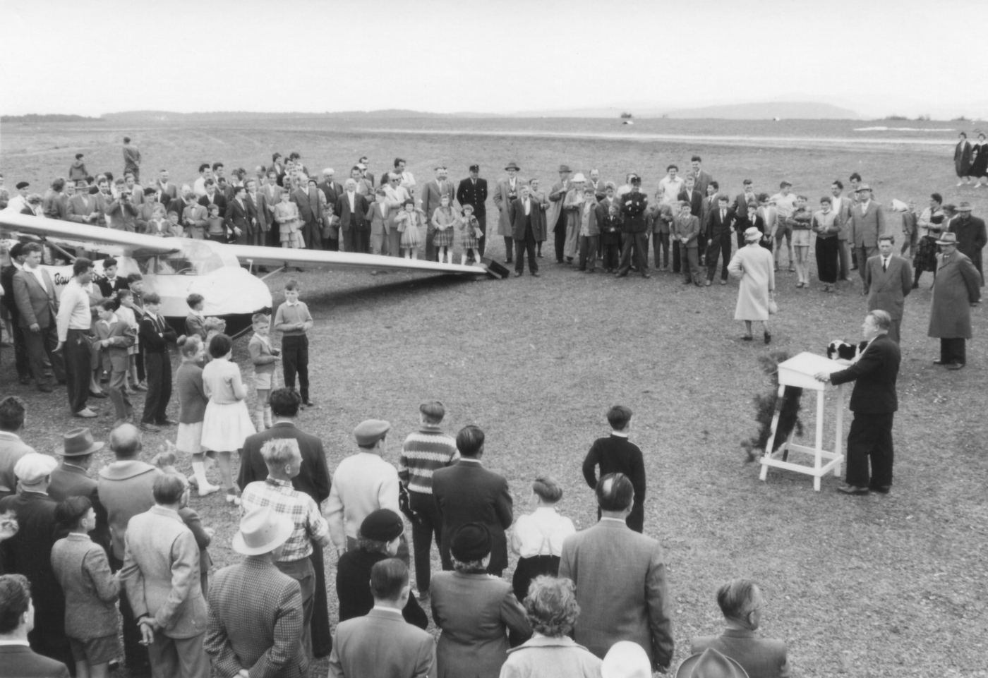 hier findet wohl gerade eine Ansprache oder auch Flugzeugtaufe statt, das Bild soll vom Flugtag 1963 stammen