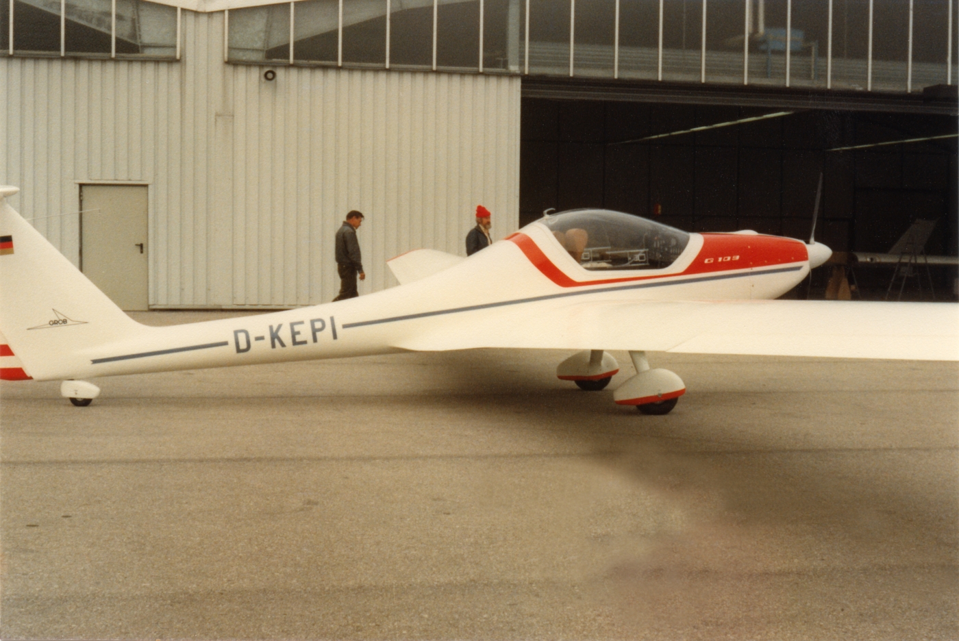 Eberhard Hanusch und Sepp Vonderau mit dem KEPI auf dem Flugplatz Mindelheim bei der Firma Grob (Aufnahme möglicher Weise von 1981 oder 1982).