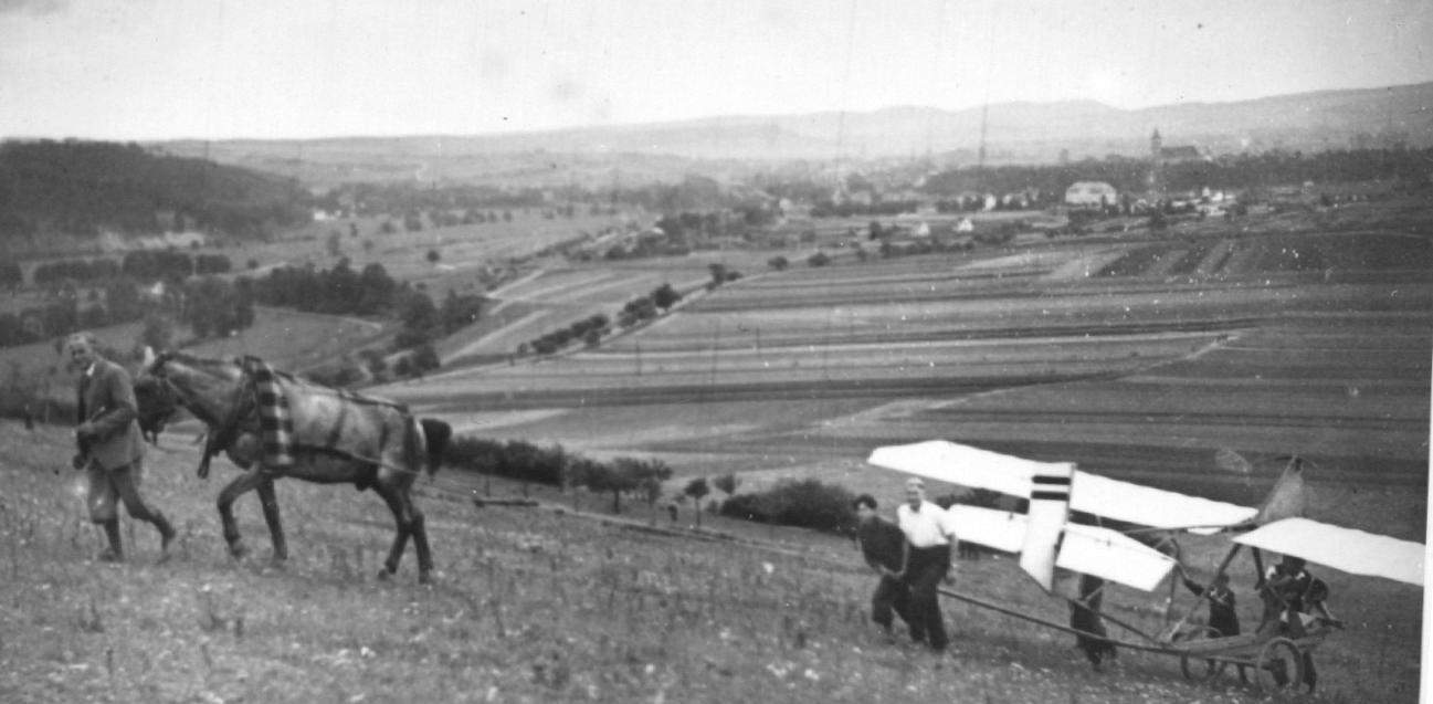 nach jedem Flug wurde der Gleiter wieder hochbefördert, Flugbetrieb am Rederkreuz, vermutlich 1933, 1934 oder 1935