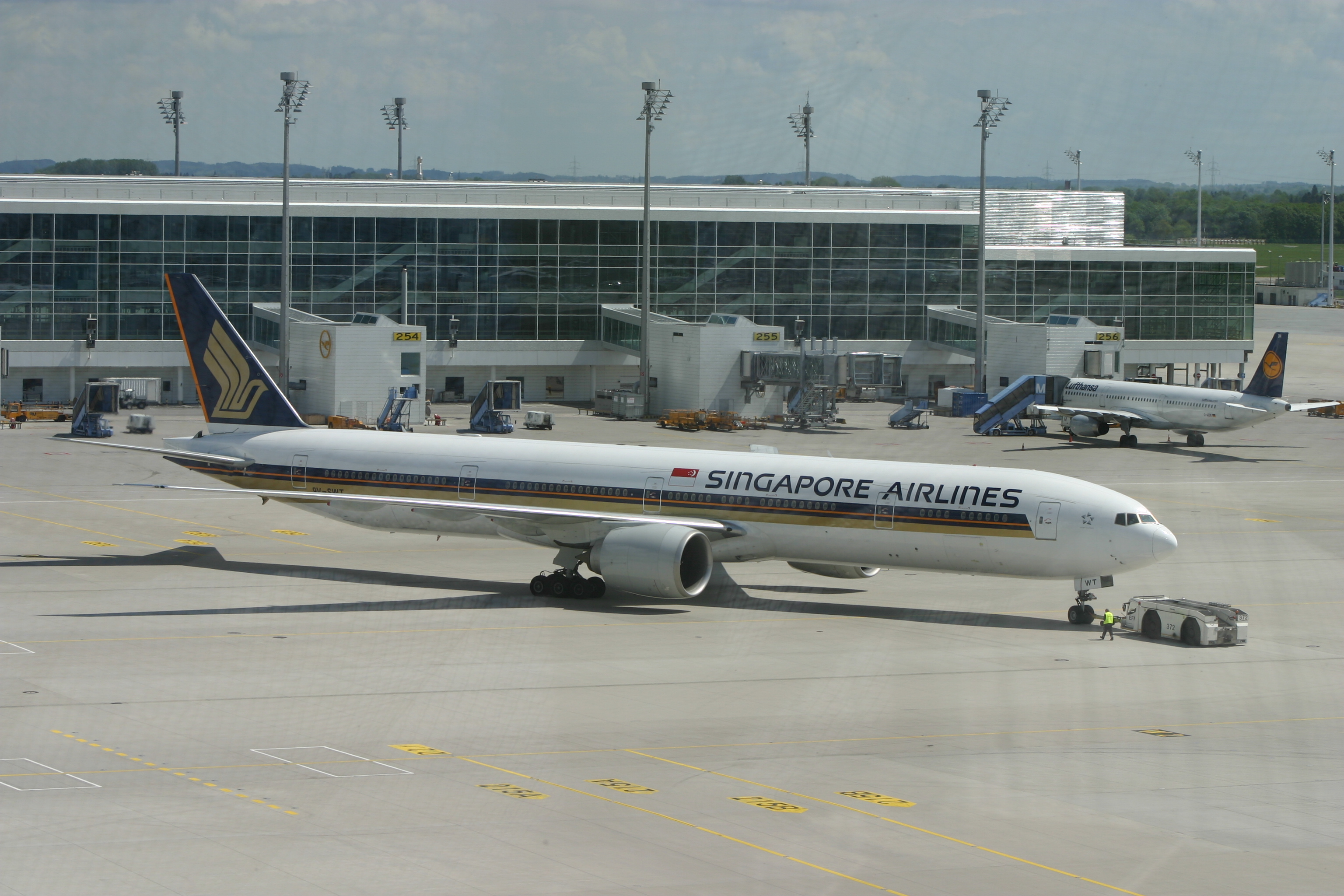 Boeing B777, Singapore Airlines, Flughafen München, push back