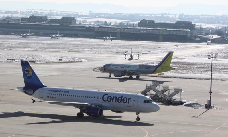 Airbus 320 von Condor rollt in Stuttgart über das Vorfeld