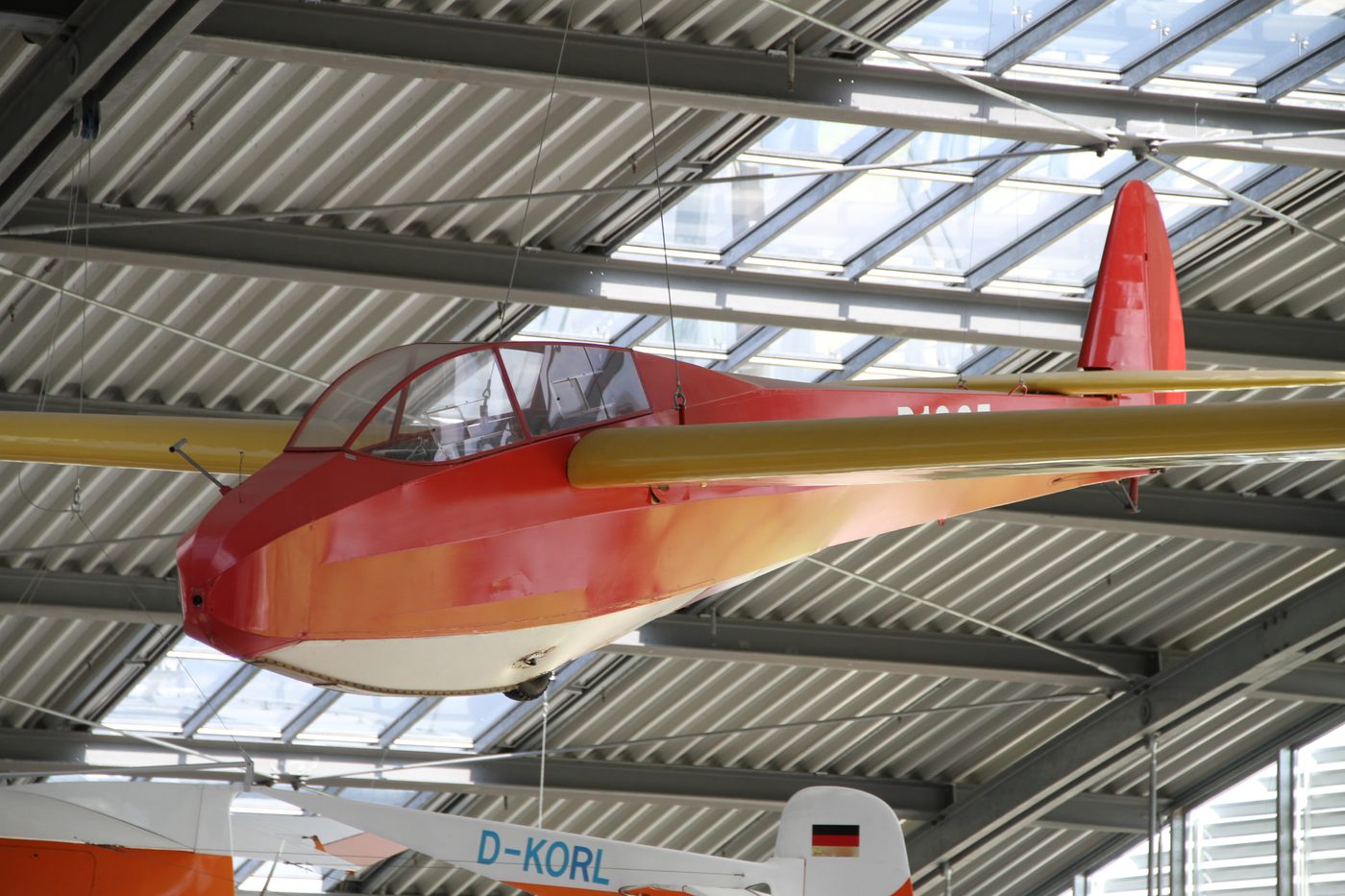 Bergfalke Mü13E, Baujahr 1952, Spannweite 17,2 m, Flügelstreckung 15,8, Rüstmasse 250 kg, beste Gleitzahl 26, geringste Sinkgeschwindigkeit 0,73 m/s