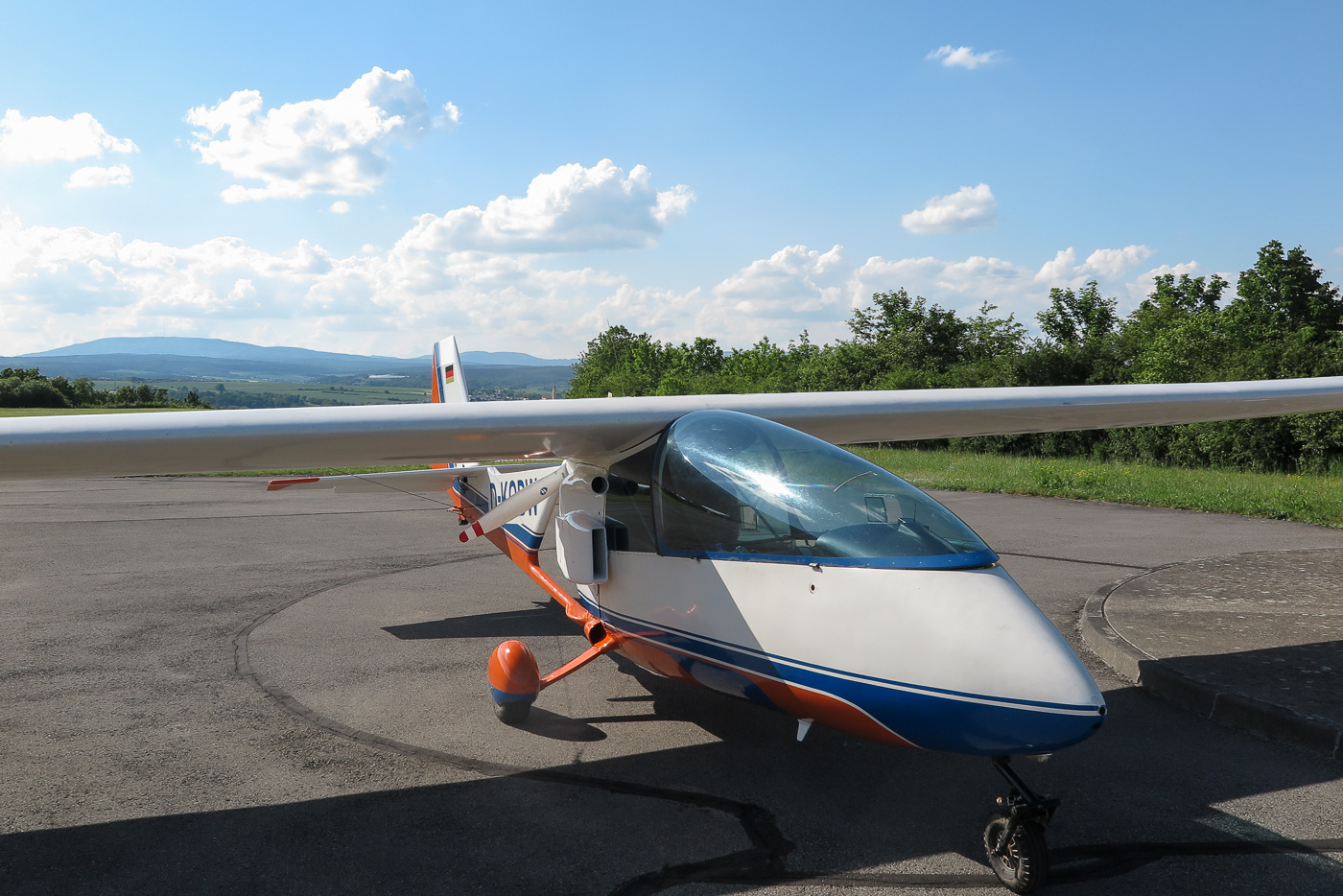 Flugplatz Bad Neustadt - Grasberg am 20.5.2024, Motorsegler von Brditschka mit Tandemsitzanordnung und Push-Propeller.