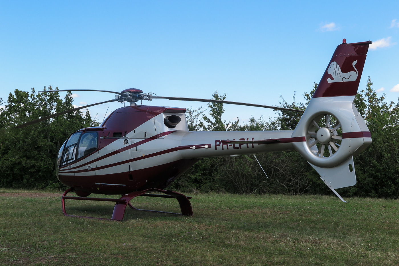 Flugplatz Bad Neustadt - Grasberg am 10.8.2024, Eurocopter EC 120B Colibri, seltener Besuch bei uns